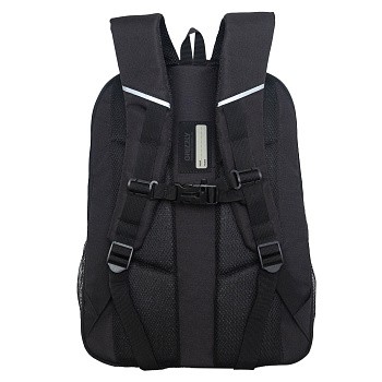 Портфель продуман до мелочей. В основном отделении есть карман для планшета или ноутбука 15". Дополнительное переднее отделение оснащено съемным держателем для ключей и тремя карманами. В передний карман поместится куча мелочей, боковые карманы из сетки предназначены для бутылки с водой или зонта. Анатомическая спинка, нагрудная стяжка и удобные лямки позволяют равномерно распределять нагрузку на спину и плечи. У рюкзака удобная ручка для переноски, дополнительная ручка-петля и укрепленное дно. Материал портфеля с водо- и грязеотталкивающей пропиткой. Двунаправленные реверсные молнии с брендированными пуллерами на замках позволяют легко его открывать и закрывать. Школьная сумка имеет прочную фирменную подкладку GRIZZLY. Светоотражающие элементы с четырех сторон создают дополнительную безопасность в условиях недостаточной видимости.