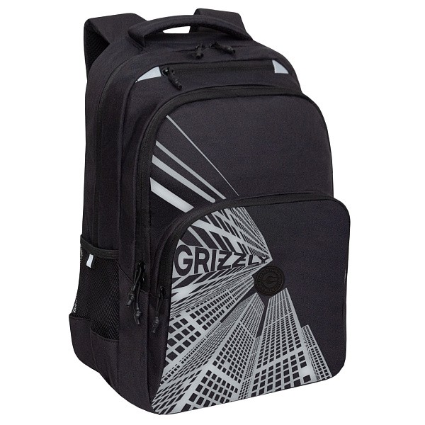 Эту серию рюкзаков GRIZZLY мы разработали для мальчиков старших классов. Они рассчитаны на рост от 150 см. Рюкзаки  яркие и стильные — нравятся подросткам. Рюкзак сделан из плотного полиэстера и хорошо держит форму. Есть светоотражающие элементы. Все швы аккуратно прошиты, а где это нужно, усилены дополнительно. Допустимая нагрузка — 7 кг. Чтобы от такого веса не пострадала осанка, мы сделали анатомическую спинку. Широкие лямки с нагрудной стяжкой со свистком снижают нагрузку на плечи. Несмотря на то, что подросткам приходится носить с собой много вещей, в школьный рюкзак они помещаются. Здесь есть два больших основных отделения для книг, тетрадей и документов формата А4. Много внутренних и внешних карманов, пенал, брелок для ключей, отделение быстрого доступа для документов и кошелька. Материал рюкзака с водо- и грязеотталкивающей пропиткой. Если рюкзак все же чем-то испачкался, мы рекомендуем ручную стирку в холодной воде.