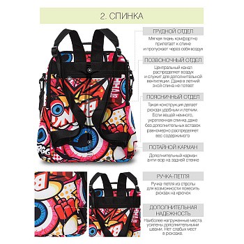 Этот женский рюкзак из прочного плотного полиэстера мы разработали для молодежи: подростков, студентов, спортсменов и не только. Есть несколько вариантов принтов. За счет водо- грязеотталкивающей пропитки ткань долго остается как новая, и чистить ее очень легко. Укрепленная спинка рюкзака хорошо держит форму, снижает нагрузку на спину и плечи.