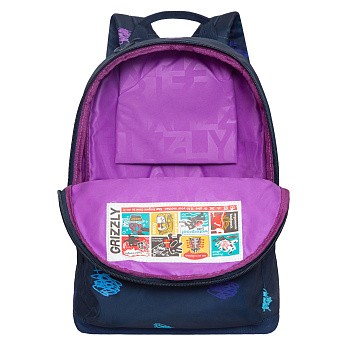 Небольшой стильный и легкий городской рюкзак GRIZZLY для прогулок и путешествий, отдыха и спорта, работы и магазина, школы и института. Этот эргономичный городской рюкзак рассчитан на рост от 150 см. Имеет одно вместительное основное отделение с карманом для папок формата А4 и ноутбука 13" и карман быстрого доступа в верхней части рюкзака. У рюкзака большой накладной карман спереди, удобная укрепленная спинка, регулируемые мягкие лямки и ручка для переноски. Материал рюкзака с водо- и грязеотталкивающей пропиткой. Если же рюкзак все же чем-то испачкали, мы рекомендуем ручную стирку в холодной воде. Двунаправленные реверсные молнии с брендированными пуллерами на замках позволяют легко открывать и закрывать рюкзак. Рюкзак имеет прочную и грязеотталкивающую фирменную подкладку GRIZZLY.