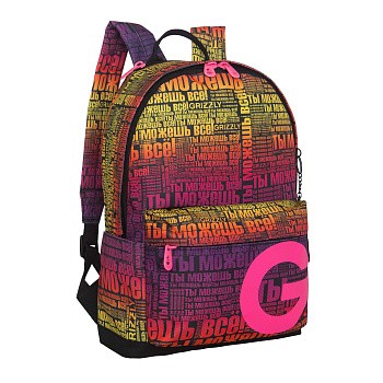 Небольшой стильный и легкий  городской рюкзак GRIZZLY для прогулок и  путешествий, отдыха и спорта, работы и магазина, школы и института. Этот эргономичный городской рюкзак рассчитан на рост от 140 см. Имеет одно вместительное основное отделение с карманом для папок формата А4 и ноутбука 13" и карман быстрого доступа в верхней части рюкзака. У рюкзака большой накладной карман спереди,  удобная укрепленная спинка, регулируемые мягкие лямки и ручка для переноски. Материал рюкзака с водо- и грязеотталкивающей пропиткой. Если же рюкзак все же чем-то испачкали, мы рекомендуем ручную стирку в холодной воде. Двунаправленные реверсные молнии с брендированными пуллерами на замках позволяют легко открывать и закрывать рюкзак.  Рюкзак имеет прочную и грязеотталкивающую фирменную подкладку GRIZZLY.