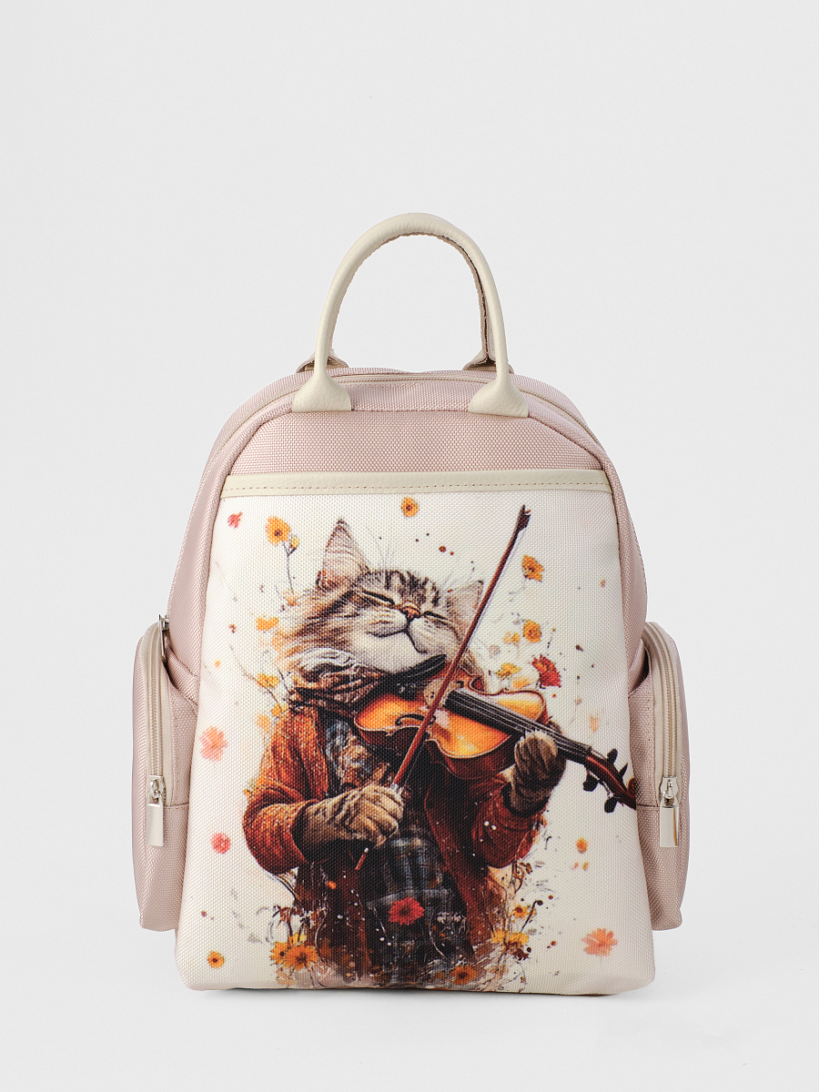 Рюкзак женский из текстиля и отделкой из натуральной кожи. Рюкзак городской среднего размера, удобный для прогулок, путешествий и поездок. Состоит из двух отделений закрывающихся на молнию, внутри есть карманы для мелочей и телефона, отделение для планшета . Снаружи по бокам два кармана на молнии. Сзади на спинке боковой карман (фото в карточке товара) Удобный, легкий, прост в уходе. Идеально подходит как женщинам, девушкам так и юным леди.