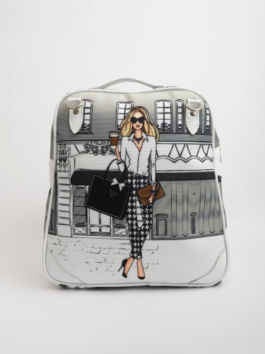Современная, удобная, сумка-рюкзак выполнена из текстиля, с ручками и отделкой из натуральной кожи, внутри есть 4 кармана для мелочей, один из них на молнии. Удобная для переноски документов формата А4, легкая, проста в уходе. Ткань не линяет.  Сумки торговой марки Gallato сделаны из армированного нейлона с водоотталкивающей полиуретановой пропиткой. Каждый принт выполнен индивидуально. На дне рюкзака есть  "ножки".  Ручки оснащены карабинами, что позволяет быстро и без хлопот превратить вашу сумку в удобный рюкзак. Лямки рюкзака  можно  уменьшить, перестегнув карабины крест-накрест.
