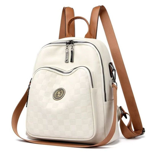 Внутри: одно большое отделение с карманами на молнии и без для телефона, документов и различных мелочей. Рюкзак закрывается на встречную молнию. На внешней передней стенке вместительный карман на молнии. На внешней задней стенке расположен карман на молнии. Снаружи по бокам расположено два открытых кармана для зонта и бутылки с водой. Лямки регулируются по высоте. В комплекте удлинённый отстёгиваемый ремень, регулируемый по высоте. За счёт ремня рюкзак можно носить как сумку на плече или через плечо. Ровное устойчивое дно позволяет фиксировать положение сумки-рюкзака на поверхности.
