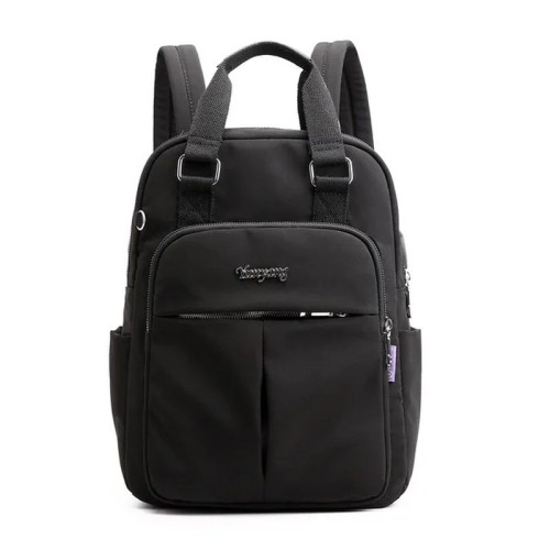 Внутри: одно большое отделение, по бокам которого расположены карманы на молнии и без для телефона, документов и различных мелочей. С внешней стороны на передней стенке два кармана на молнии. Снаружи по бокам расположены открытые карманы. В комплекте USB провод. Лямки регулируются по высоте.