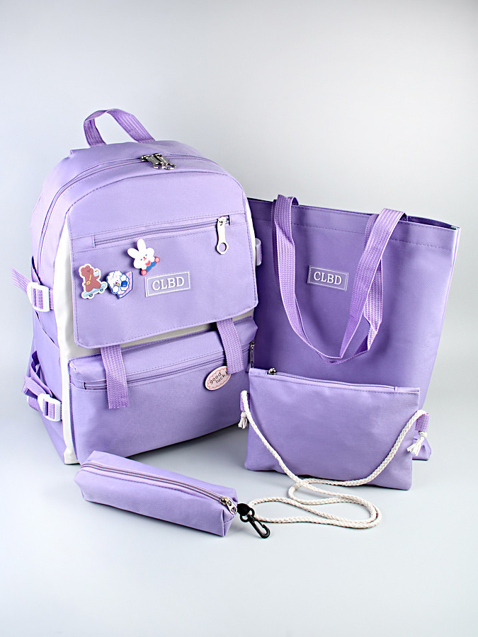 Этот рюкзак сочетает в себе функциональность и стильный дизайн. Он подходит для дошкольников, начальной школы и даже для подростков ведущих активный образ жизни. В набор входят рюкзак, пенал, сумка-шоппер и косметичка. Рюкзак вмещает формат А4 и имеет много отделений для всех необходимых вещей. Рюкзак имеет 1 вместительное отделение на молнии, передних 2 кармана на молнии, и 2 боковых кармана. Отличный подарок Вашим близким и любимым.