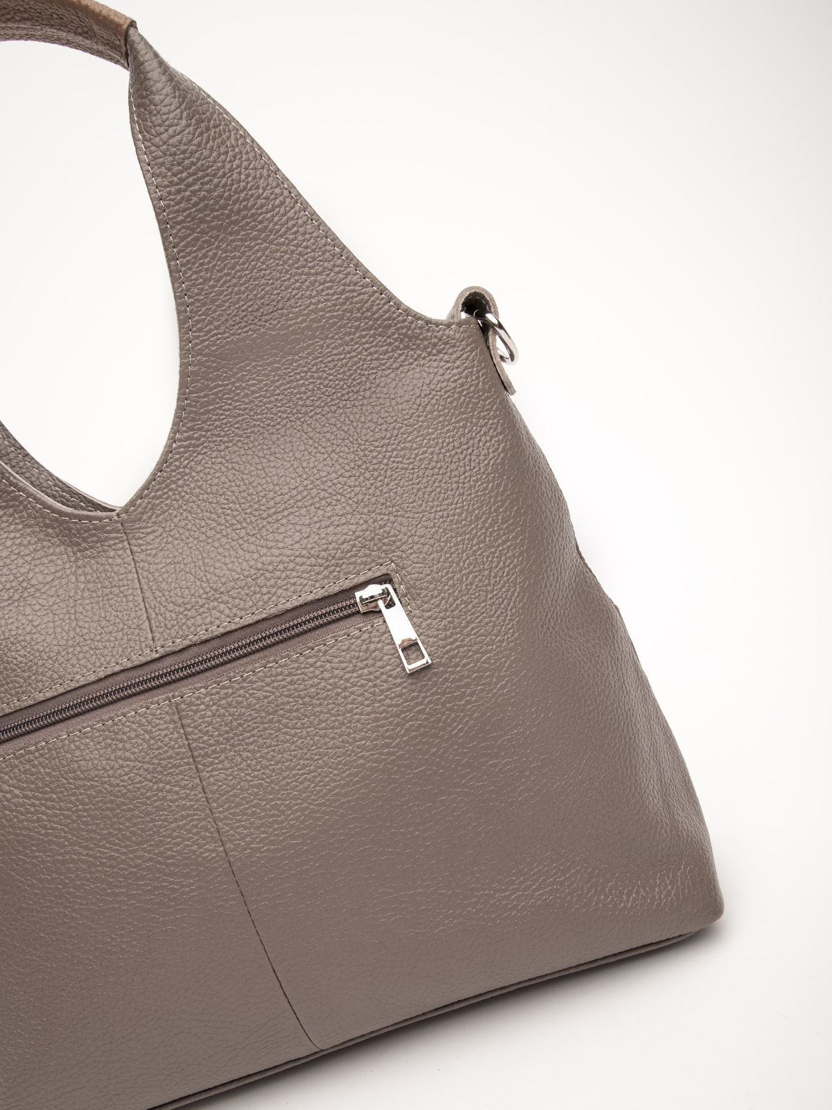 Очаровательная сумка-хобо среднего размера из натуральной кожи с контрастными ручками и регулируемым ремнём на карабинах, которые предлагают множество вариантов ношения — в руке, на плече или через плечо. Просторное основное отделение закрывается на молнию и дополнено двумя практичными карманами для мелочей. Изысканное сочетание фактур и продуманная конструкция делают эту модель идеальным аксессуаром на каждый день — от прогулок до светских выходов.