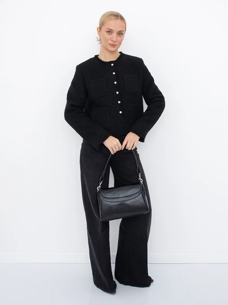 Базовая модель, выполнена из натуральной кожи. Дополнена серебристой фурнитурой. Данная модель закрывается на клапан, носится в руке за съемную ручку. Или на плече, в комплекте имеется ремень с регулировкой длины. Каркас полужесткий. На дне предусмотрены ножки.