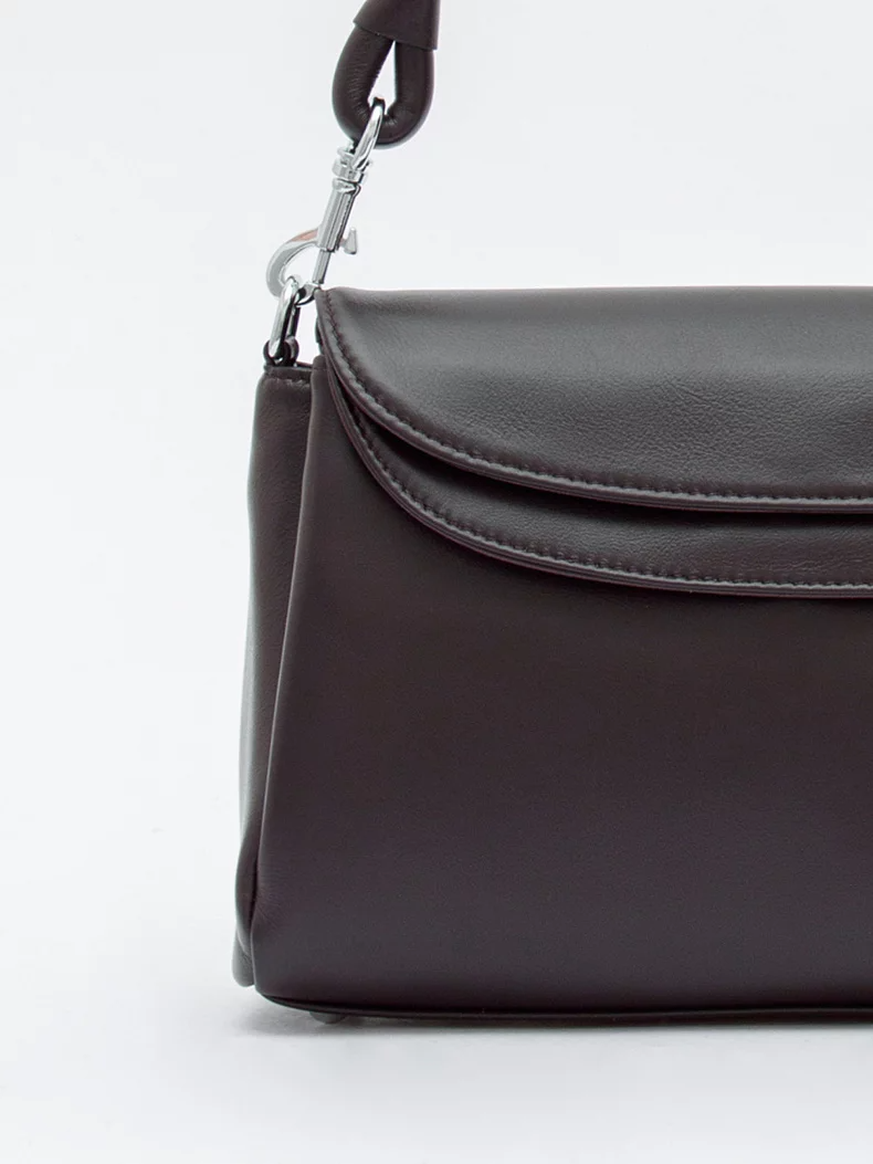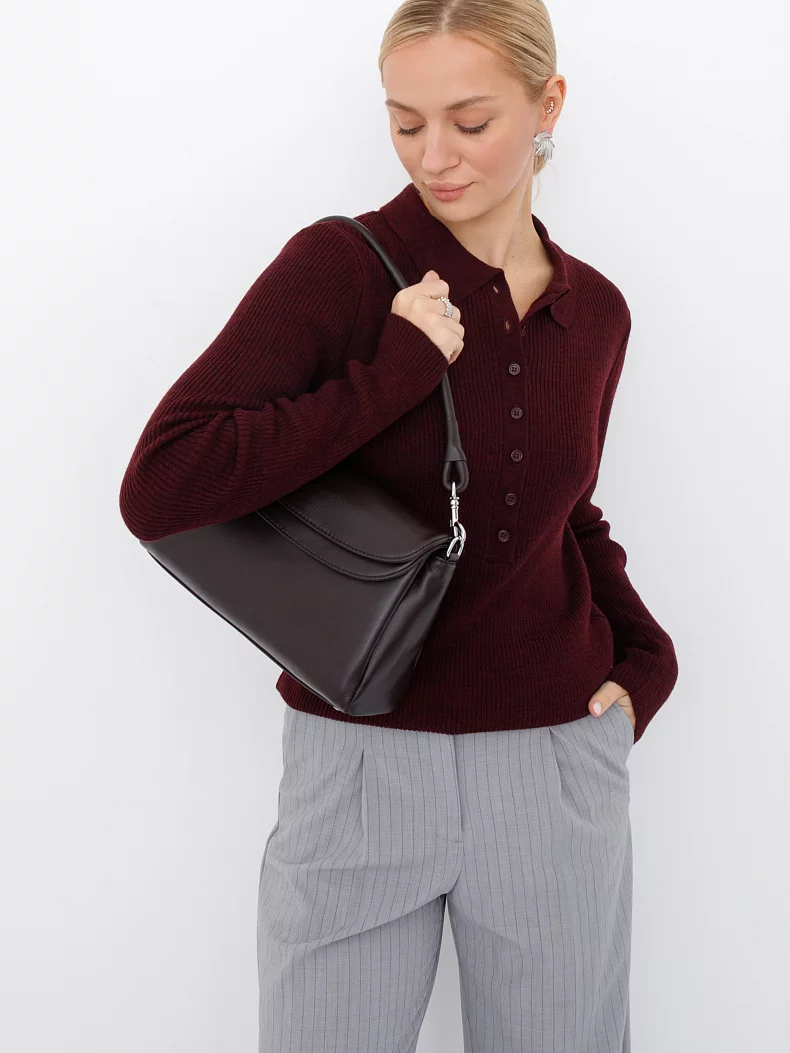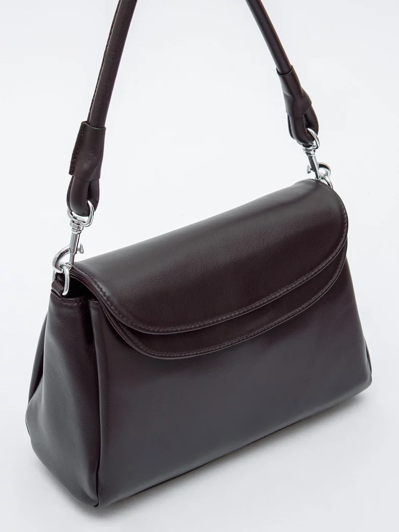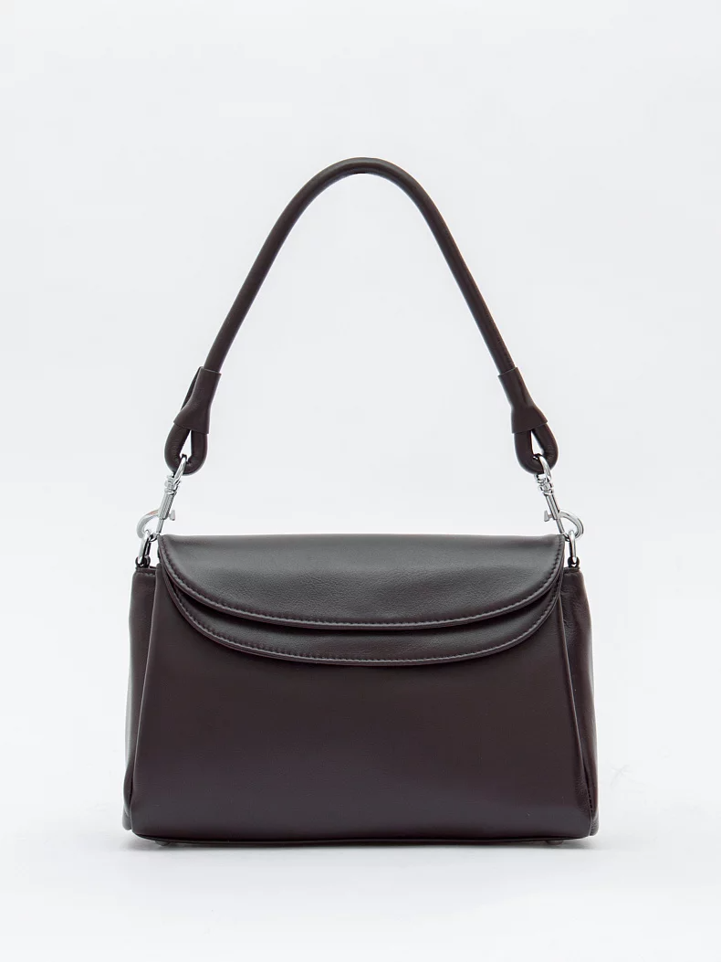 Базовая модель, выполнена из натуральной кожи. Дополнена серебристой фурнитурой. Данная модель закрывается на клапан, носится в руке за съемную ручку. Или на плече, в комплекте имеется ремень с регулировкой длины. Каркас полужесткий. На дне предусмотрены ножки.