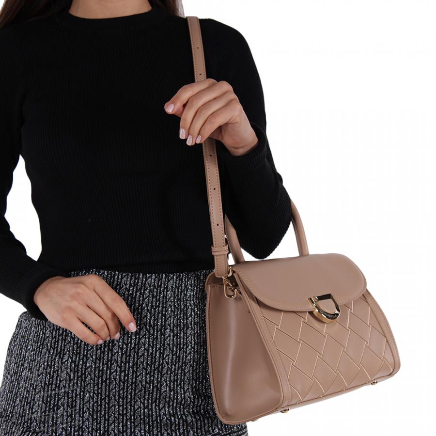 Базовая сумка-сэчел в комплекте с кошельком, выполнена из экокожи. Декорирована пряжкой. Дополнена золотистой фурнитурой. Данная модель закрывается на клапан, носится на плече или через плечо с помощью ремня. Каркас жесткий. На дне предусмотрены ножки для устойчивости.