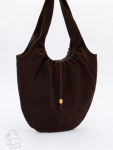 Вместительная модель, выполнена из натуральной кожи. Дополнена серебристой фурнитурой. Данная модель закрывается на молнию, носится в руке за ручки. Каркас полужесткий. На дне предусмотрены ножки.