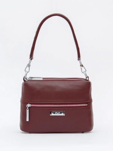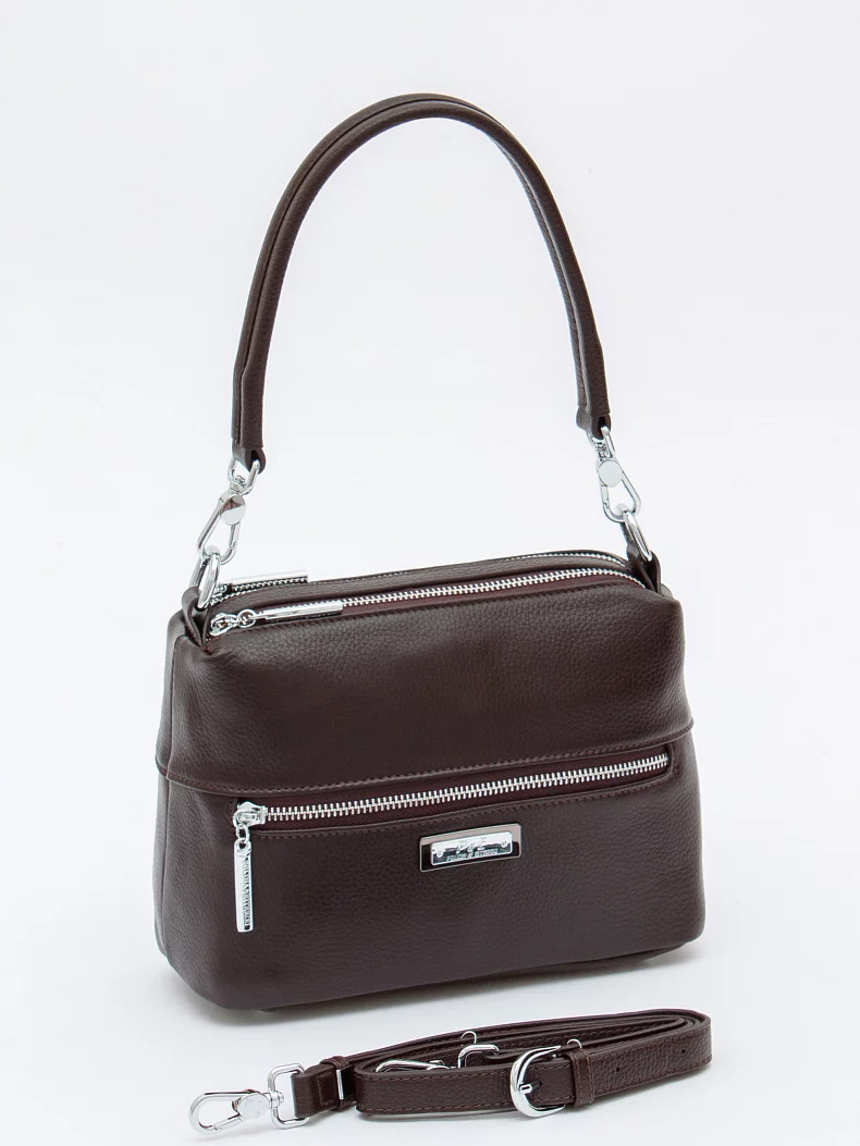 Классическая модель, выполнена из натуральной кожи. Декорирована логотипом на корпусе. Дополнена серебристой фурнитурой. Данная модель закрывается на молнии. Каркас полужесткий. Носится в руке за съемную ручку или на плече. В комплекте имеется съемный ремень с регулировкой длины.