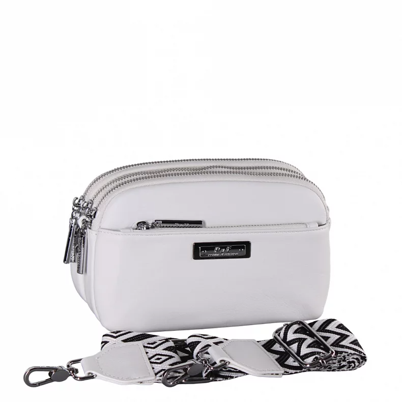 Кросс-боди в стиле спорт-шик, выполнена из натуральной кожи. Дополнена серебристой фурнитурой. Данная модель закрывается на молнию. Каркас мягкий. Носится на плече. В комплекте есть кожаный плечевой ремень с регулировкой длины и ремень-стропа.