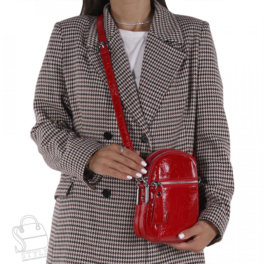 Сумка кросс-боди, выполнена из натуральной лаковой кожи. Декорирована брелоком на "собачке". Дополнена серебристой фурнитурой. Данная модель закрывается на молнии. Каркас полужесткий. Носится на плече за съемный ремень с регулировкой длины.