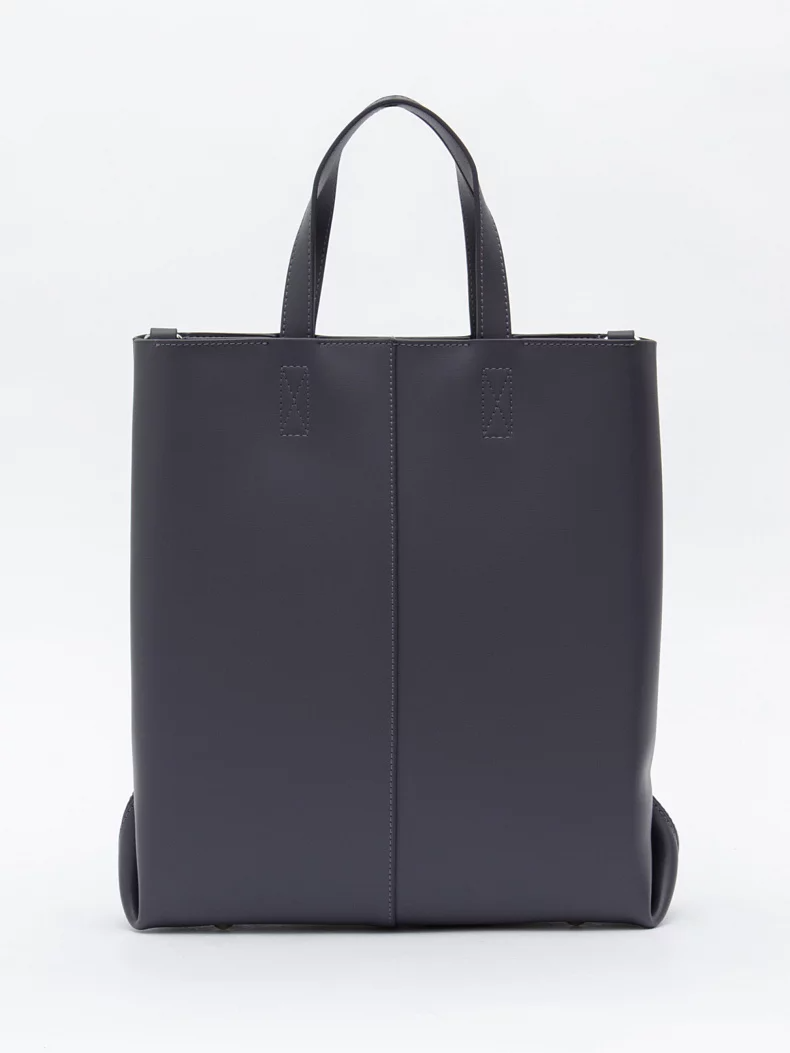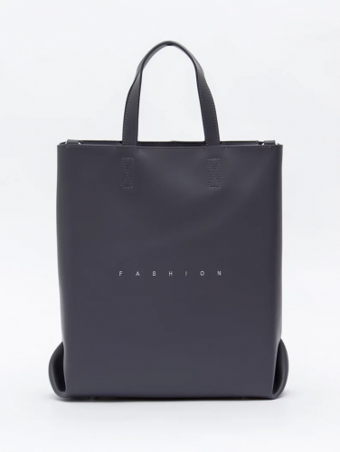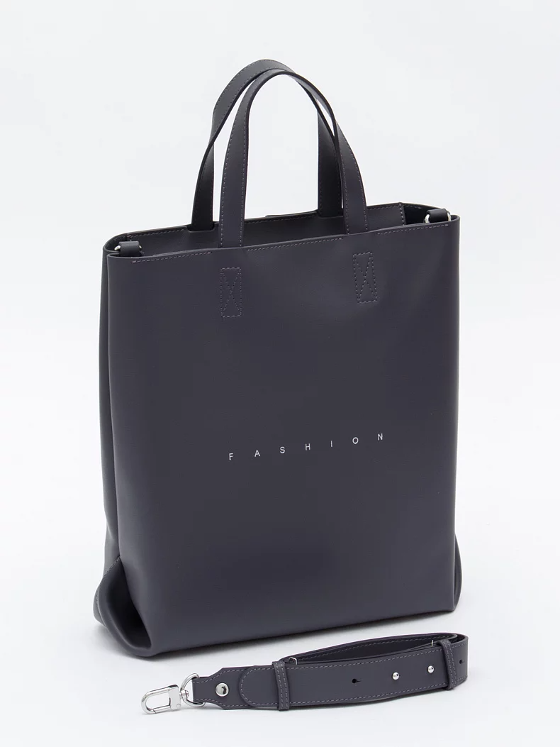 Модель-шоппер, выполнена из кожи. Дополнена серебристой фурнитурой. Данная модель закрывается на молнию. Каркас полужесткий. Носится в руке за встроенные ручки или на плече. В комплекте имеется съемный ремень с регулировкой длины.