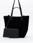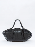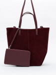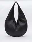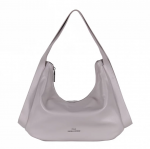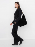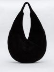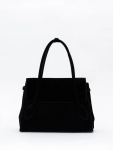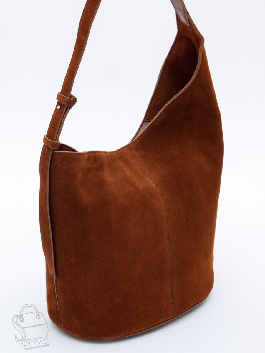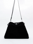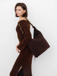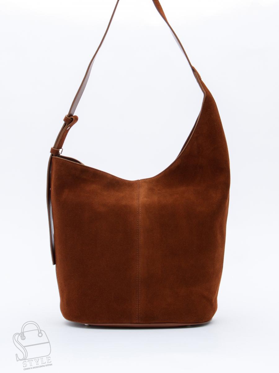 Сумка-мешок с ассиметричным краем, выполнена из замши. Дополнена серебристой фурнитурой. Данная модель закрывается на кнопку. Носится в руке или на плече за встроенную ручку с регулировкой длины.  Каркас мягкий. На дне предусмотрены ножки.
