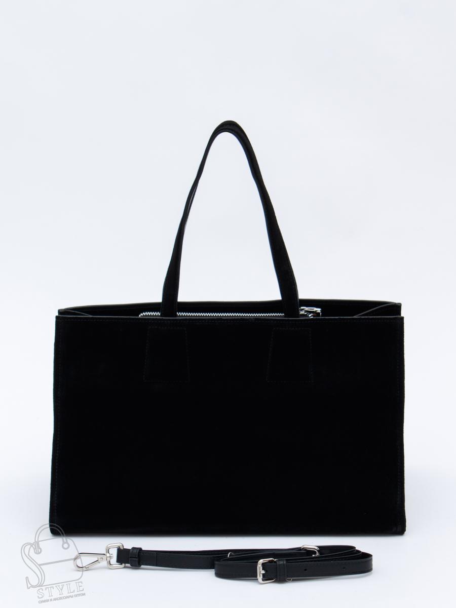 Модель в лаконичном дизайне с широким дном, выполнена из замши.  Дополнена серебристой фурнитурой. Данная модель закрывается на молнию, носится в руке за встроенные ручки. Или на плече, в комплекте имеется ремень с регулировкой длины. Каркас мягкий.