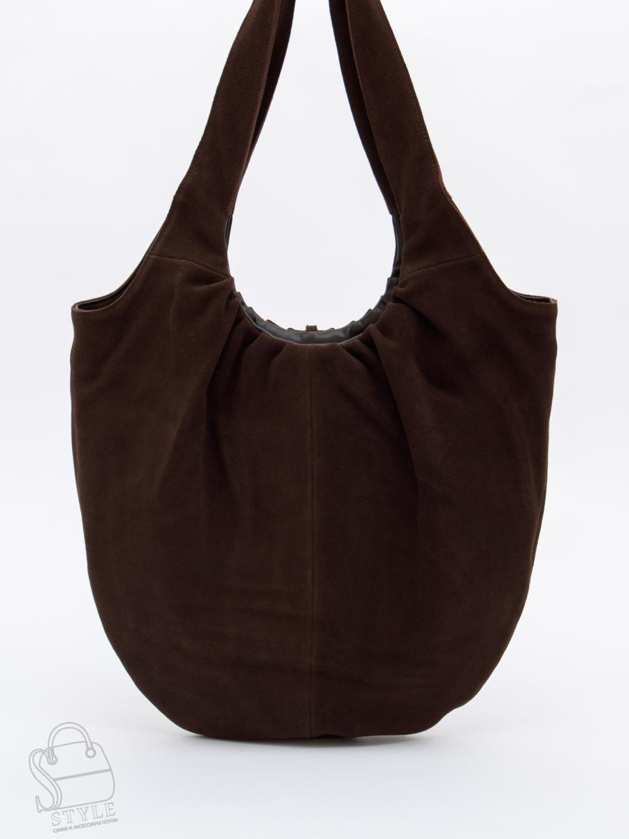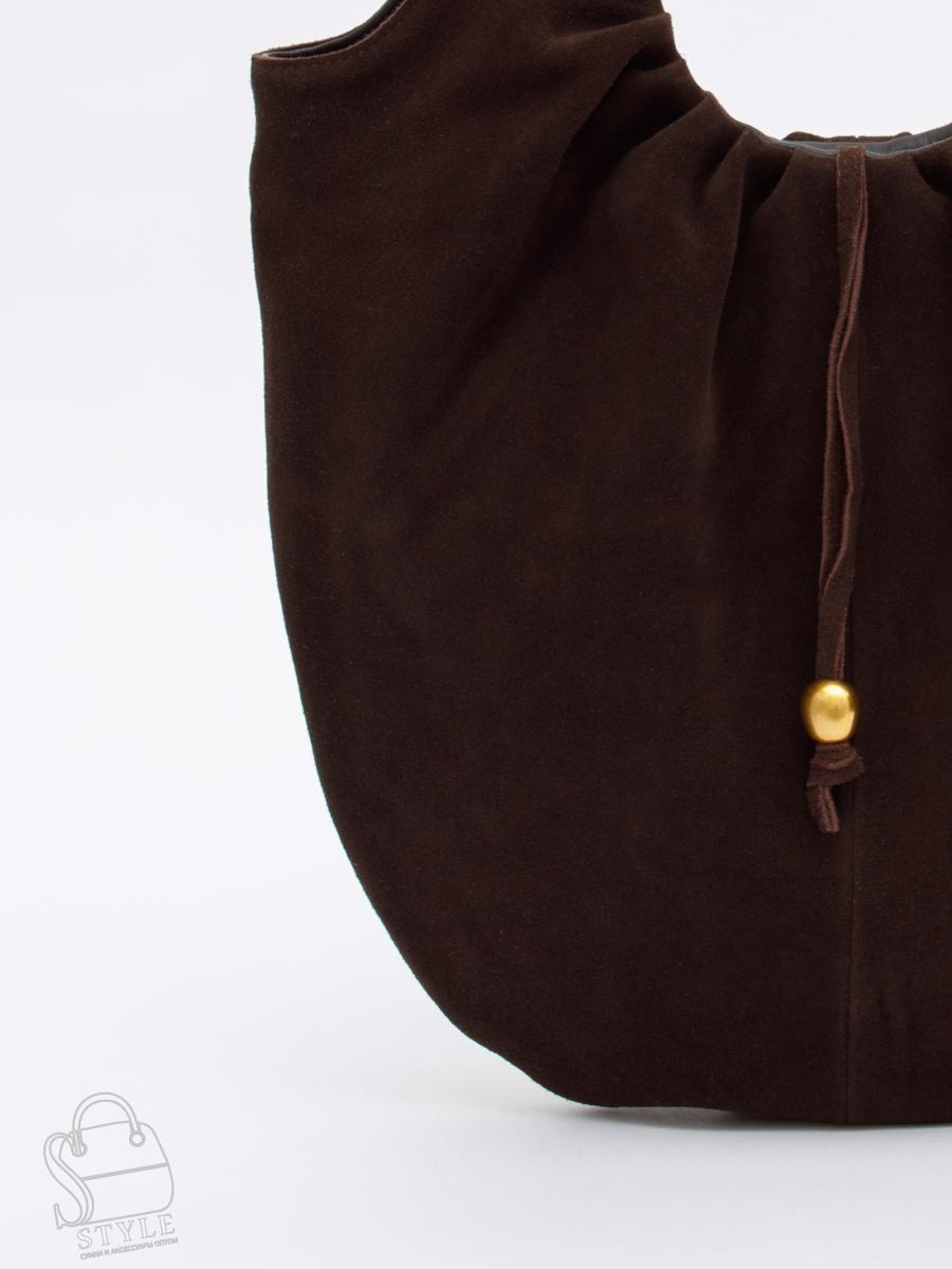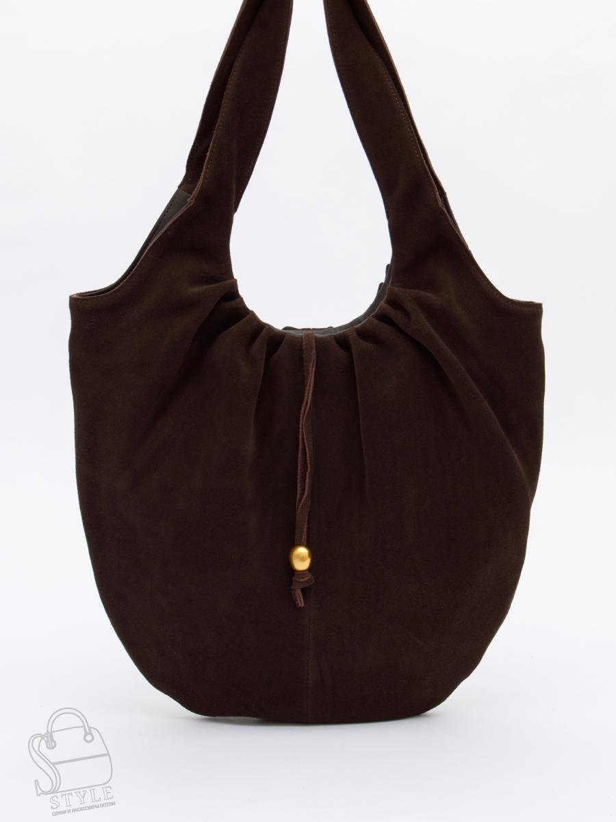 Сумка-хобо, выполнена из замши. Декорирована брелоком. Дополнена золотистой матовой фурнитурой. Данная модель закрывается на молнию. Каркас мягкий. Носится на плече за встроенные ручки.