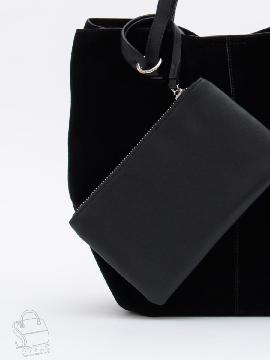 Стильная модель с альтернативными ручками, выполнена из замши. Дополнена серебристой фурнитурой. Данная модель закрывается на кнопку. Каркас мягкий. Носится в руке или на плече за короткие или длинные ручки. В комплекте имеется косметичка.