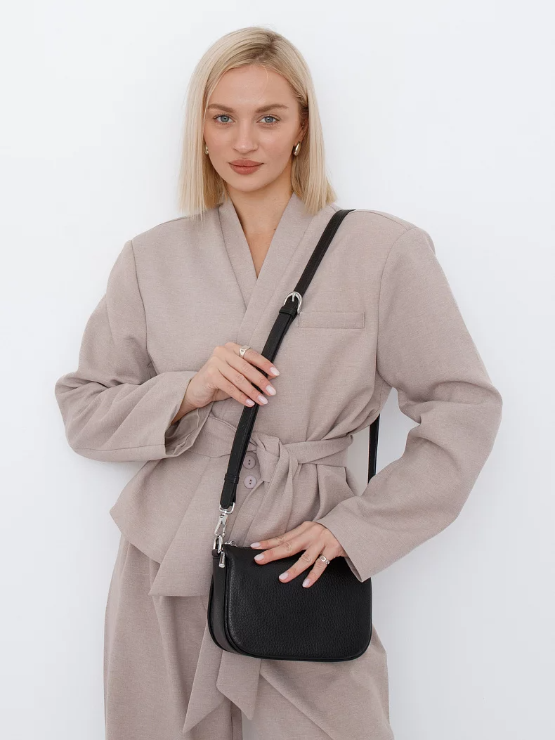 Сумка кросс-боди, выполнена из натуральной кожи. Дополнена серебристой фурнитурой. Данная модель закрывается на молнию, носится на плече или через плечо, в комплекте имеется ремень с регулировкой длины. Каркас полужесткий.