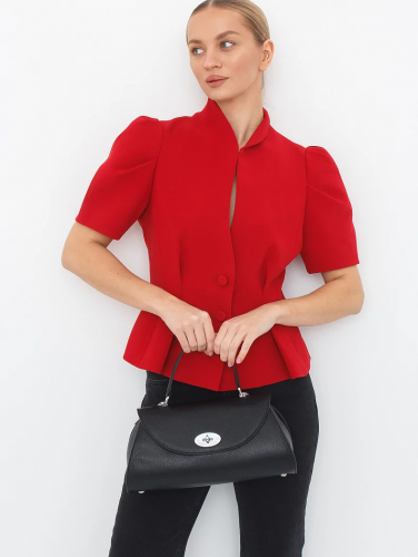 Стильная сумка, выполнена из натуральной кожи.  Дополнена серебристой фурнитурой. Данная модель закрывается на клапан. Каркас жесткий. Носится в руке за встроенную ручку или на плече за съемный ремень. На дне предусмотрены ножки.