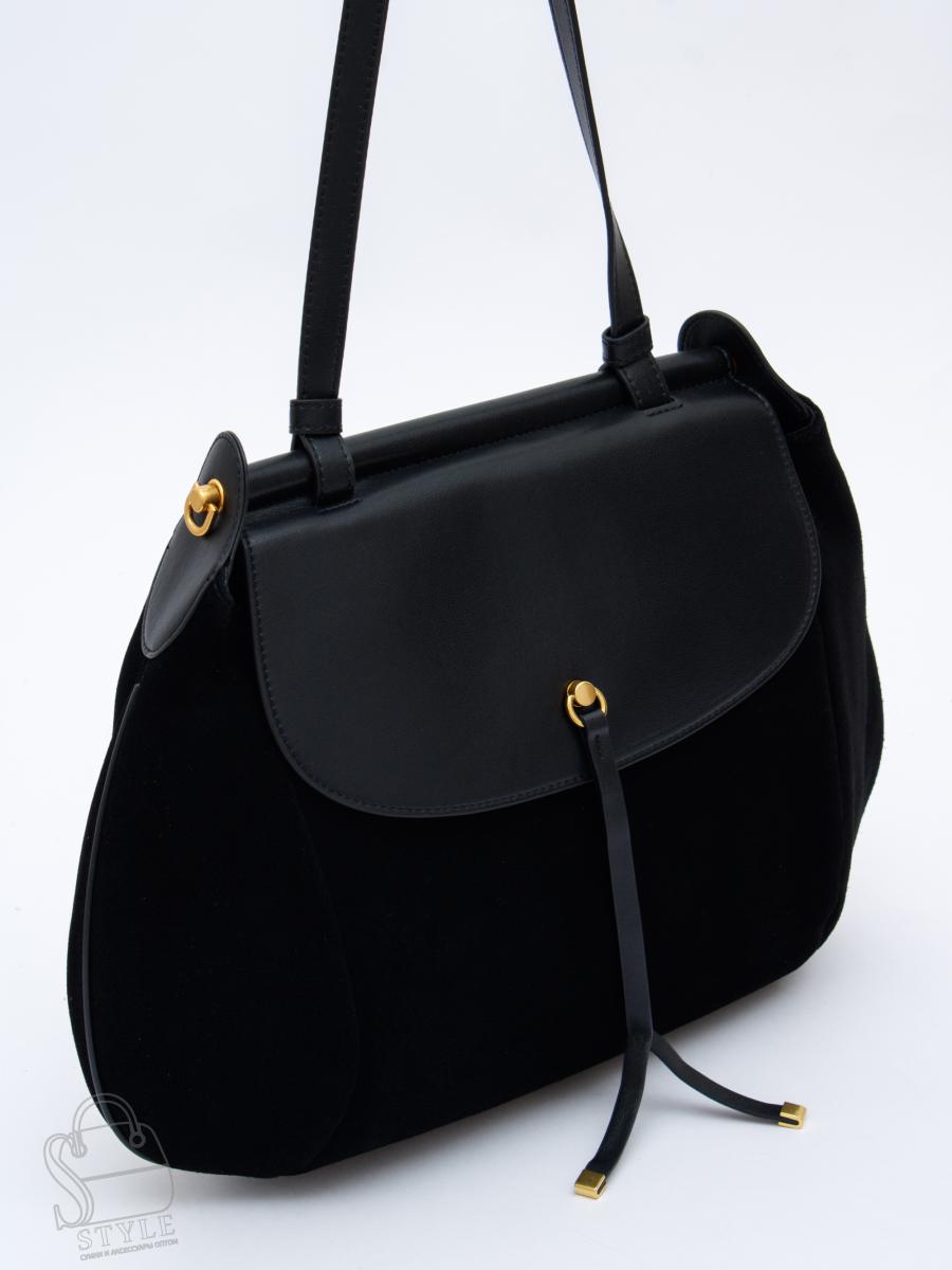 Вместительная сумка, выполнена из замши. Декорирована деталью на клапане. Дополнена золотистой фурнитурой. Данная модель закрывается на клапан, носится в руке за встроенную ручку. Или на плече, в комплекте имеется ремень-стропа с регулировкой длины. Каркас полужесткий.
