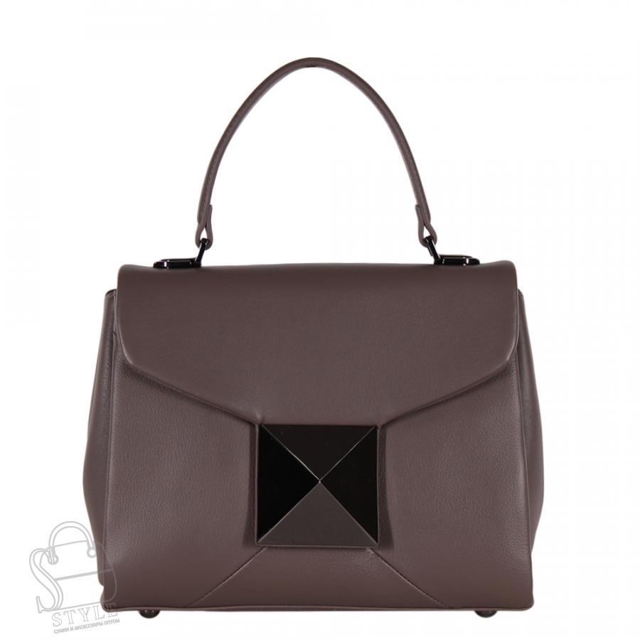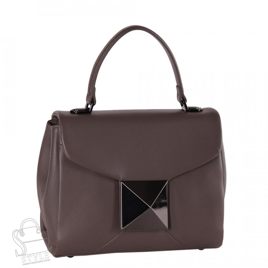 Сумка-сэтчел, выполнена из натуральной кожи. Декорирована пряжкой на клапане. Дополнена темной фурнитурой. Данная модель закрывается на клапан, носится в руке за ручки, на плече или через плечо с помощью ремня. Каркас полужесткий. На дне есть ножки.