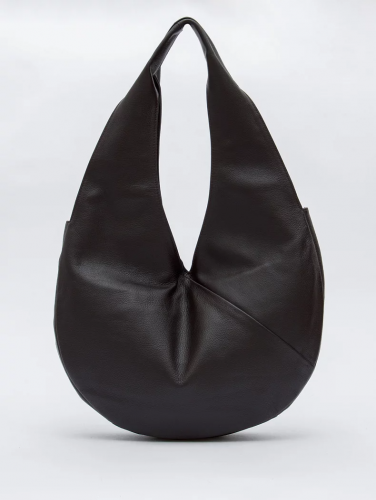 Модель-хобо, выполнена из натуральной кожи. Дополнена серебристой фурнитурой. Данная модель закрывается на молнию. Носится в руке или на плече за встроенные ручки. Каркас мягкий.