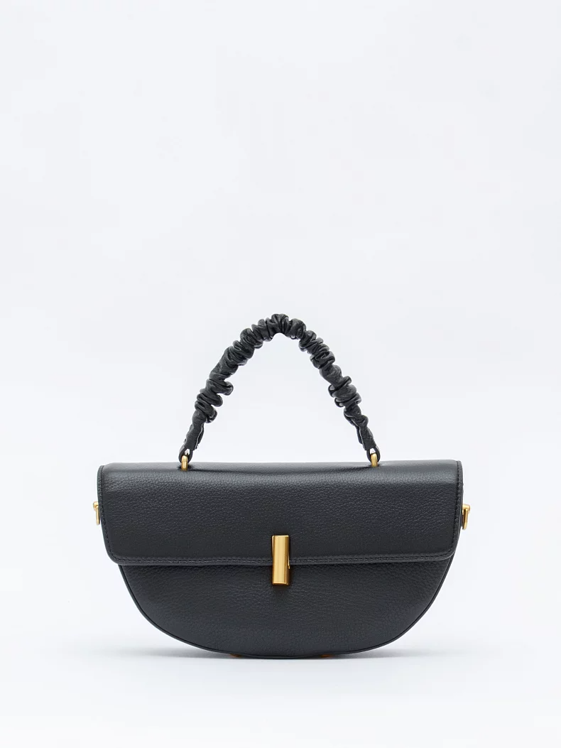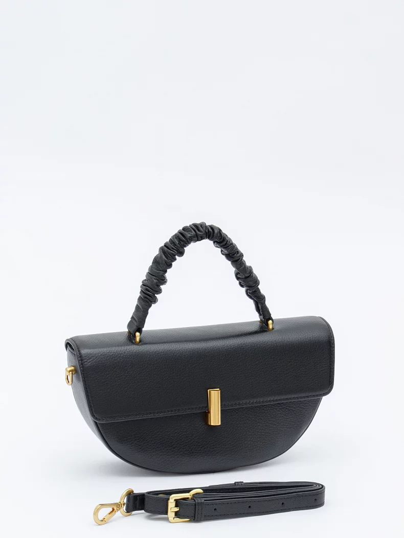 Сумка в форме лодочка, выполнена из кожи. Дополнена золотистой фурнитурой. Данная модель закрывается на клапан. Каркас жесткий. Носится в руке за встроенную ручку или на плече. В комплекте длинный плечевой ремень с регулировкой длины.