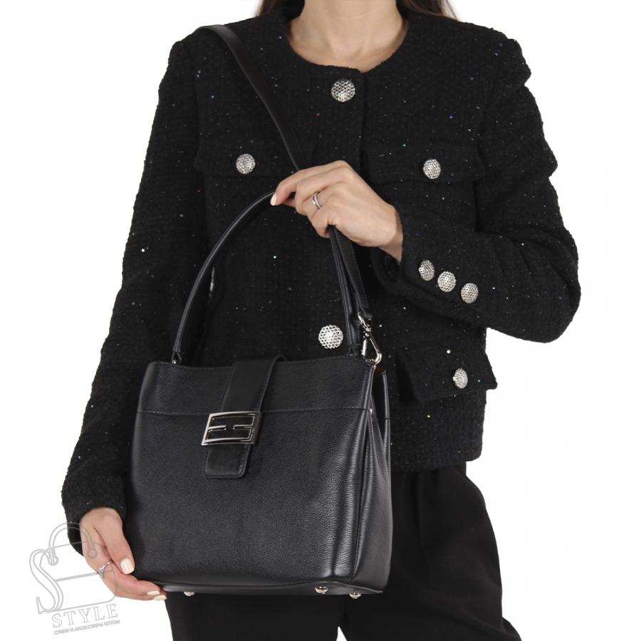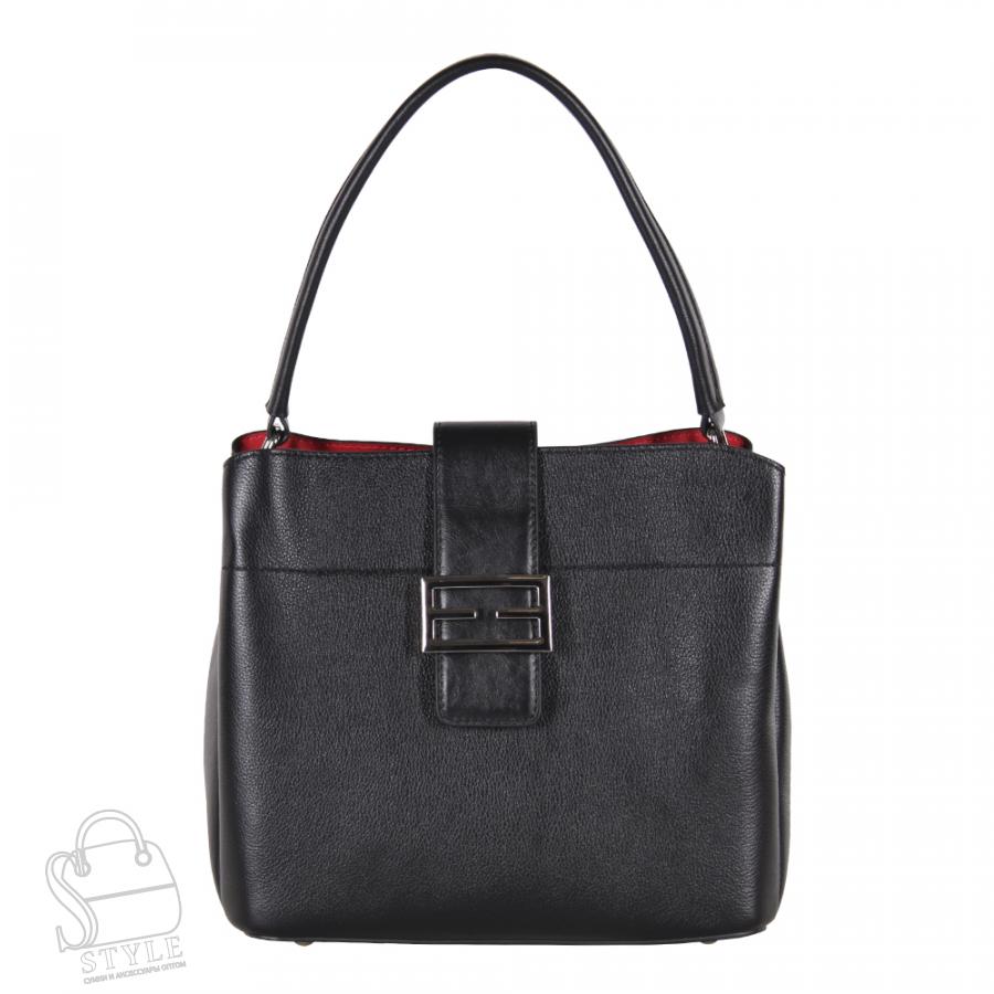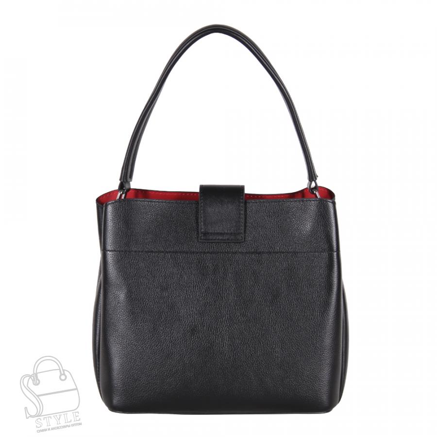 Базовая сумка, выполнена из натуральной кожи.  Декорирована пряжкой на клапане. Дополнена  серебристой фурнитурой. Данная модель закрывается на молнию. Каркас полужесткий. Носится на плече или в руке. В комплекте имеется съемный ремень и короткая встроенная ручка. На дне предусмотрены ножки.