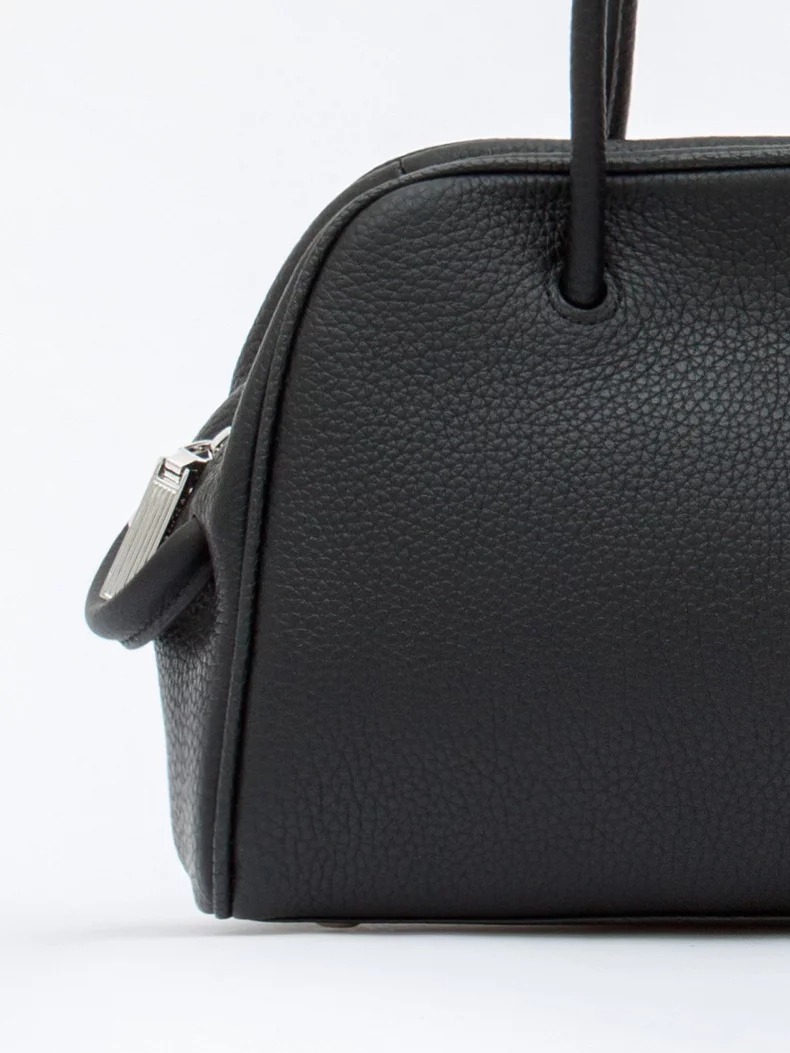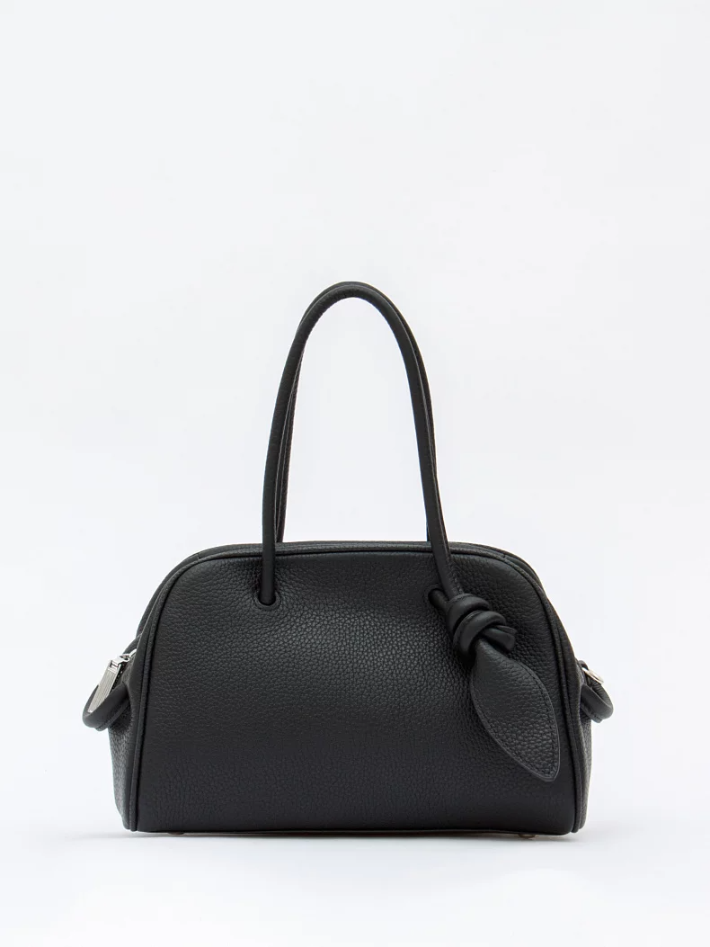 Компактная сумка, выполнена из натуральной кожи. Декорирована эффектной ручкой. Дополнена серебристой фурнитурой. Данная модель закрывается на молнию. Каркас полужесткий. Носится в руке за встроенные ручки или через плечо. В комплекте имеется съемный ремень с регулировкой длины. На дне предусмотрены ножки.