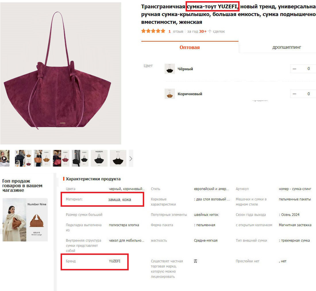 Материал:  замша