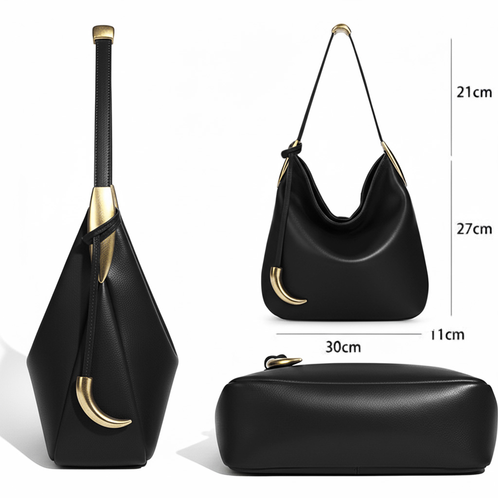 Стильная женская сумка  с  фактурой натуральной кожи. Плавный, слегка асимметричный силуэт выглядит живо и естественно, подчёркивая расслабленный, но продуманный характер модели. Удобная ручка на плечо дополнена аккуратными металлическими элементами в тёплом золотом оттенке, которые добавляют изящный акцент.