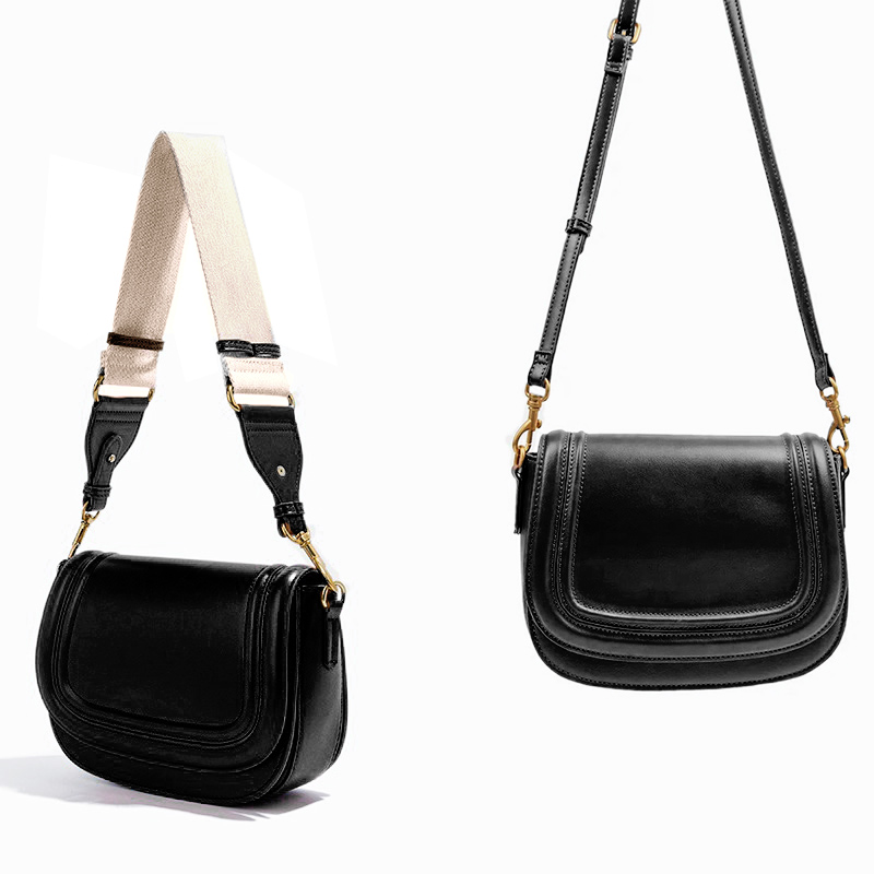 Комплектуется 2-мя длинными ремнями: узким кожаным и широким тканевым.