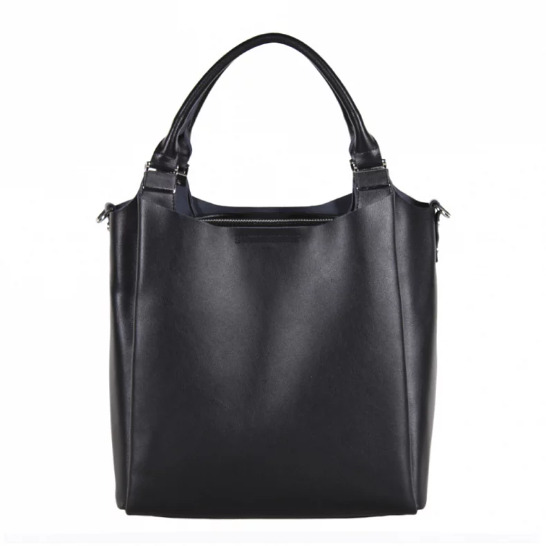 Вместительная модель, выполнена из натуральной кожи. Дополнена серебристой фурнитурой. Данная модель закрывается на молнию. Каркас полужёсткий. Носится в руке за встроенные ручки или на плече за съемный плечевой ремень. Внутри: на боковых частях карман открытый и на молнии. Снаружи: основной отдел закрывается на молнию. Два отдела с быстрым доступом.