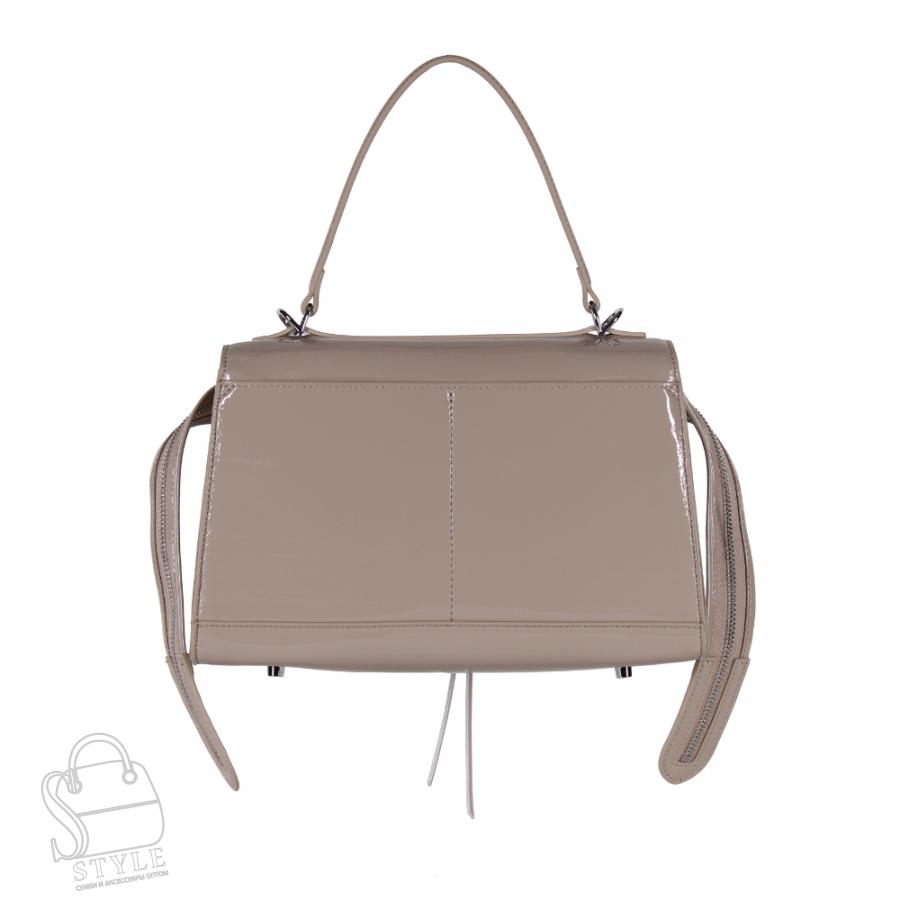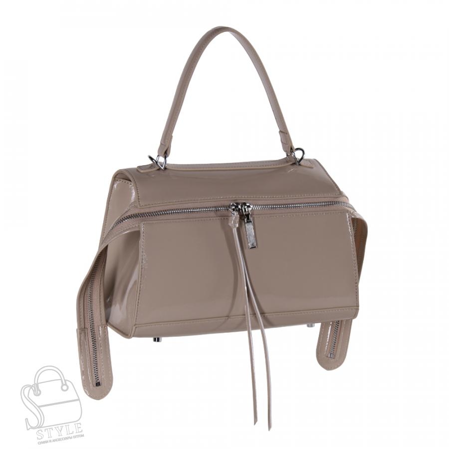 Модель среднего размера, выполнена из натуральной лаковой кожи. Декорирована брелоком. Дополнена серебристой фурнитурой. Данная модель закрывается на удлиненную молнию. Каркас мягкий. Носится в руке за встроенные удлиненные ручки и на плече. В комплекте имеется съемный широкий ремень без регулировки. На дне предусмотрены ножки.