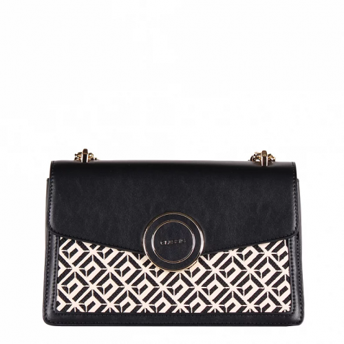 Сумка кросс-боди на цепочке, выполнена из экокожи. Декорирована вышивкой на передней части. Дополнена золотистой фурнитурой. Данная модель закрывается на клапан. Каркас жесткий. Носится в руке или на плече.  Цепочка перетягивается.