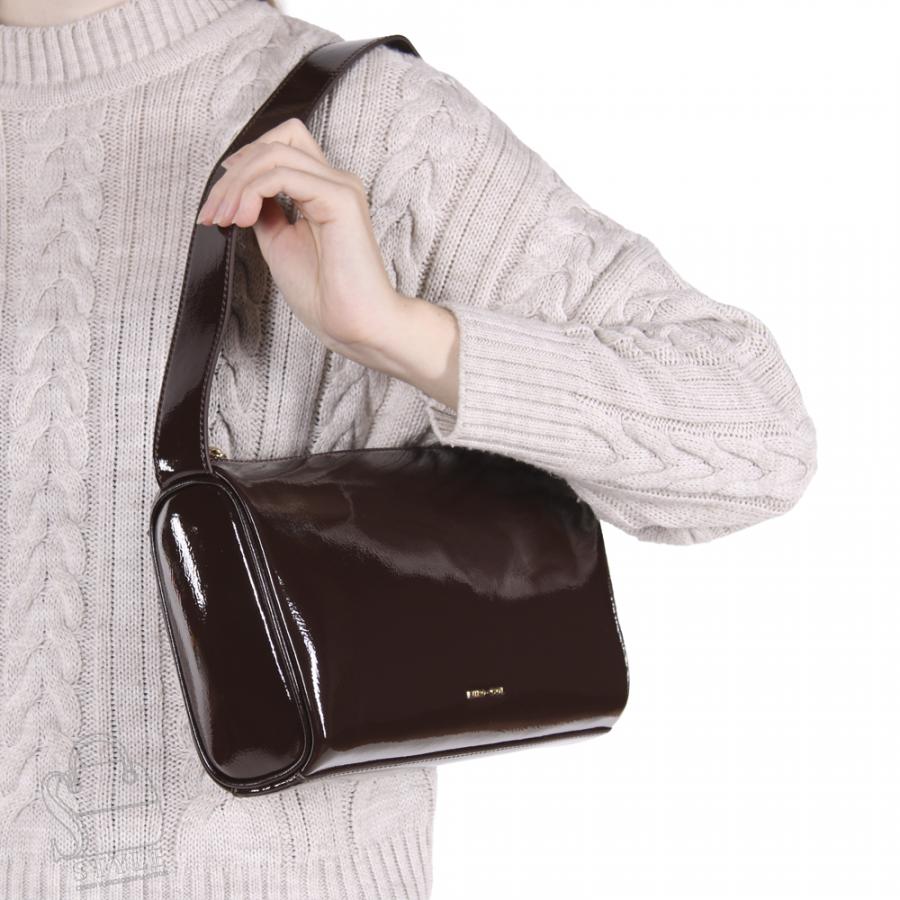 Стильная сумка, выполнена из натуральной лаковой кожи.  Дополнена серебристой фурнитурой. Данная модель закрывается на молнию, носится на плече или в руке. Каркас полужесткий.