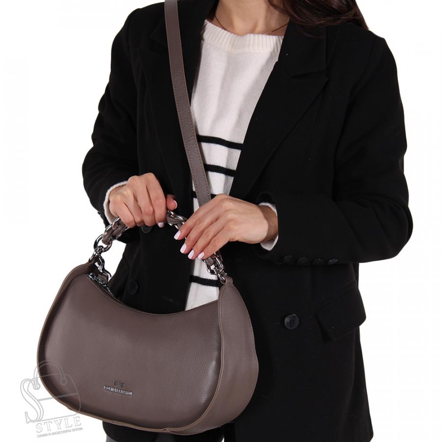 Стильная модель в форме полумесяц, выполнена из натуральной кожи. Декорирована ручкой-цепочкой. Дополнена серебристой фурнитурой. Данная модель закрывается на молнию. Каркас мягкий. Носится за ручку или за плечевой ремень.
