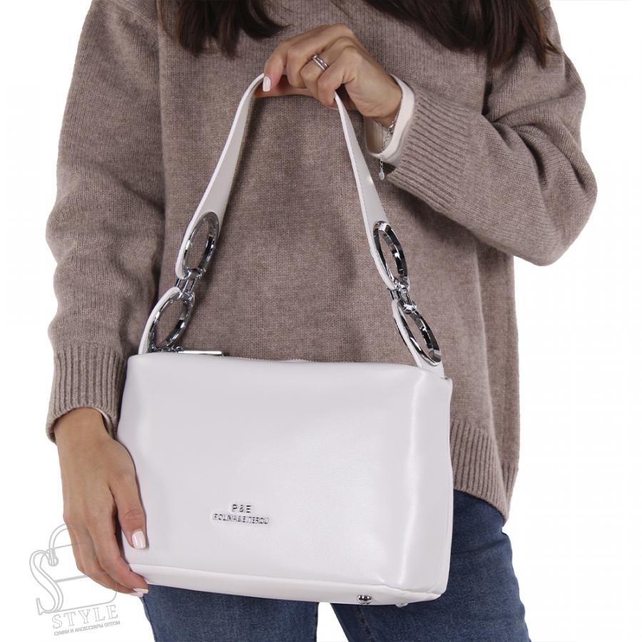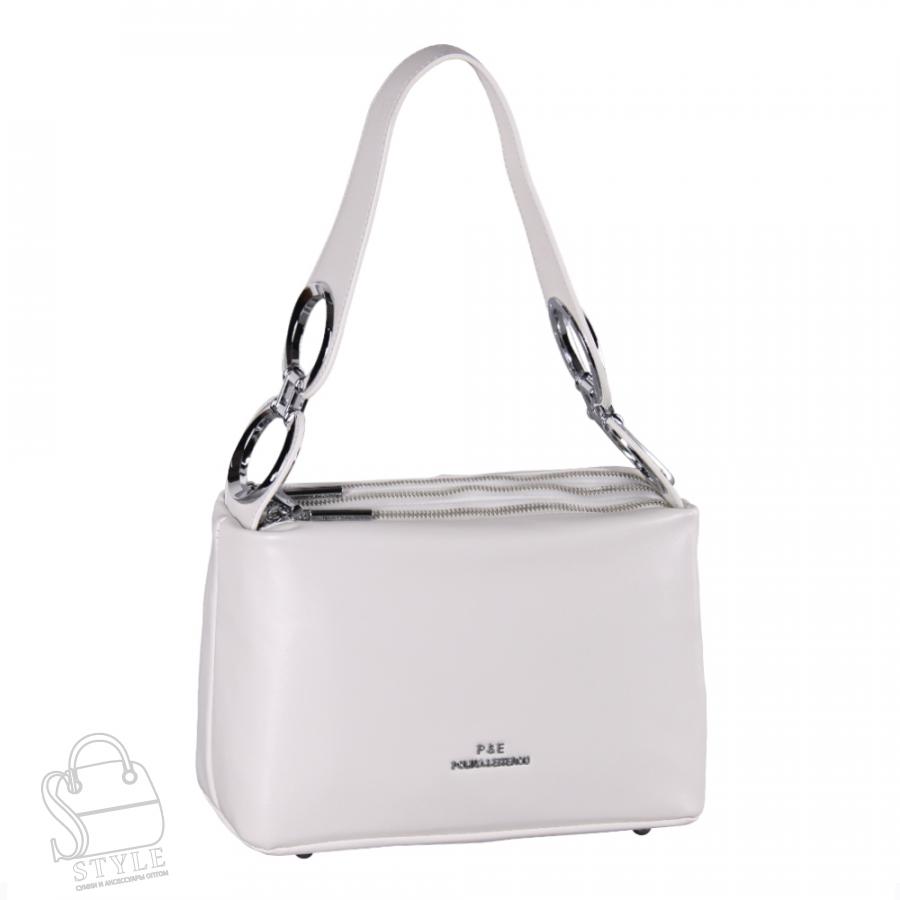 Сумка среднего размера из натуральной кожи.  Дополнена серебристой фурнитурой. Данная модель закрывается на молнии. Каркас полужесткий. Носится в руке или на плече. В комплекте есть ремень с регулировкой длины. На дне предусмотрены ножки.