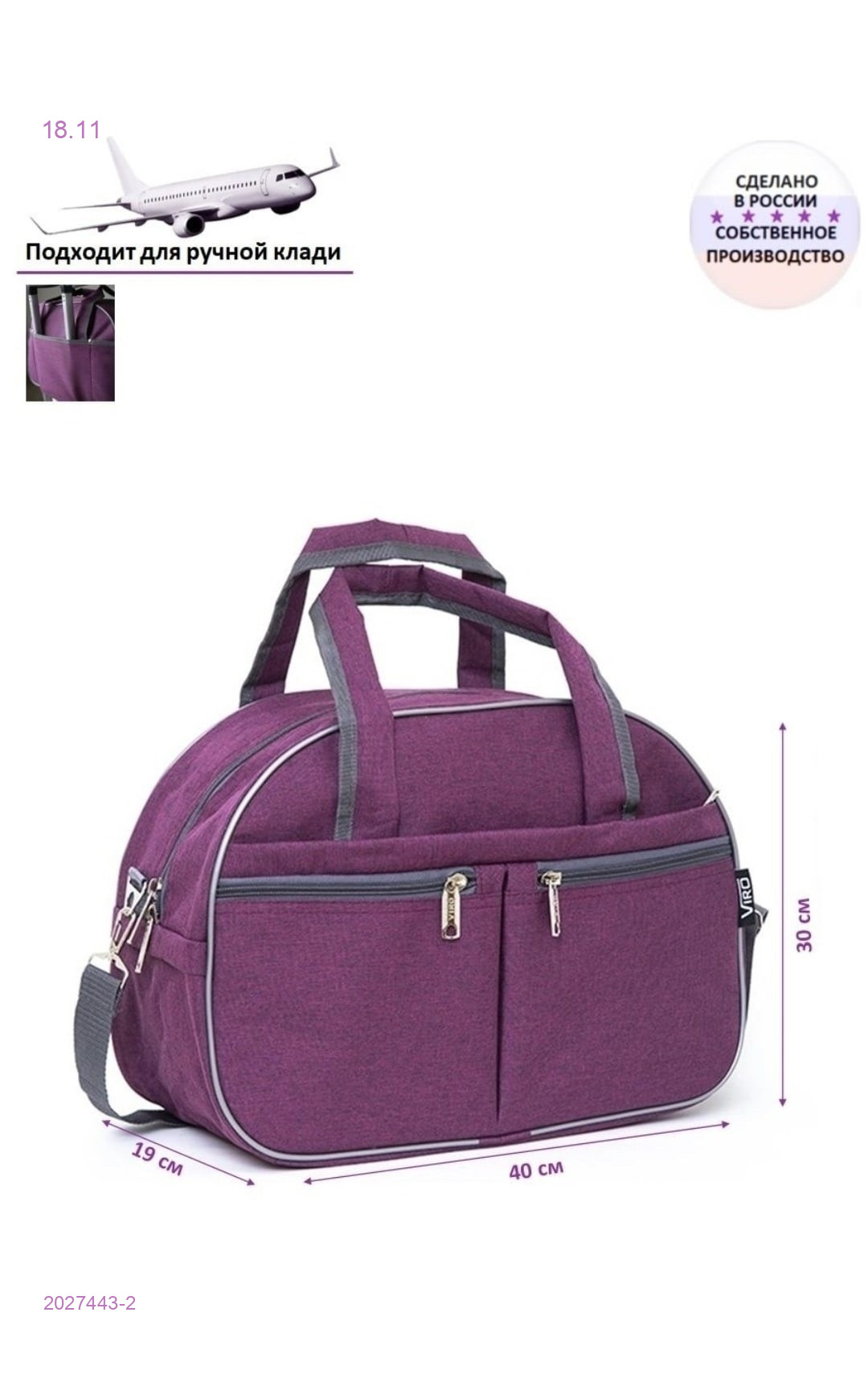 Цвет: Цвет 4Размер—..показать47/30. /20Сумки от производителя. Дорожная сумка. Сумка саквояж. Спортивная сумка. Не большая, но вместительная дорожная сумка прекрасно подойдёт, как для поездок и командировок, так и для занятий спортом. Размеры саквояжа позволяют брать с собой на борт самолета как ручную кладь. Благодаря оплетке по краям, сумка не теряет свою форму, если даже внутри мало вещей. Удобный плечевой регулируемый ремень и пластиковая накладка на ремне идут в комплекте. При необходимости можно легко увеличить высоту на 8 см. Основное отделение открывается молниями с двух сторон. Спереди три кармана на молнии, один большой и 2 маленьких. Внутри также есть небольшой карман, в который можно положить ключи, деньги и документы. Рекомендации по уходу: ручная стирка или стирка в машинке (t 30С). Дорожная сумка / сумка для ручной клади / женская сумка / мужская сумка / спортивная сумка / сумка для фитнеса / сумка через плечо / сумка на каждый день / повсндневная сумка / подарок / сумка для мамы / подарок себеХарактеристикиСтрана-изготовитель—РоссияМатериал—ПолиэстерРазмер—48/37/20Количество внутренних отделений—1Количество внешних карманов, шт—2Ручки—На плечоТип—Сумка на плечоПол—унисексКоллекция—Базовая коллекцияЦвет—Черный,серый,синий,кошка,красныйТип застежки—МолнияСтиль—Вечерний, Деловой, КлассическийУпаковка—ПакетВид сумки—Сумка-саквояж47/30. /20Сумки от производителя. Дорожная сумка. Сумка саквояж. Спортивная сумка. Не большая, но вместительная дорожная сумка прекрасно подойдёт, как для поездок и командировок, так и для занятий спортом. Размеры саквояжа позволяют брать с собой на борт самолета как ручную кладь. Благодаря оплетке по краям, сумка не теряет свою форму, если даже внутри мало вещей. Удобный плечевой регулируемый ремень и пластиковая накладка на ремне идут в комплекте. При необходимости можно легко увеличить высоту на 8 см. Основное отделение открывается молниями с двух сторон. Спереди три кармана на молнии, один большой и 2 маленьких. Внутри также есть небольшой карман, в который можно положить ключи, деньги и документы. Рекомендации по уходу: ручная стирка или стирка в машинке (t 30С). Дорожная сумка / сумка для ручной клади / женская сумка / мужская сумка / спортивная сумка / сумка для фитнеса / сумка через плечо / сумка на каждый день / повсндневная сумка / подарок / сумка для мамы / подарок себеХарактеристикиСтрана-изготовитель—РоссияМатериал—ПолиэстерРазмер—48/37/20Количество внутренних отделений—1Количество внешних карманов, шт—2Ручки—На плечоТип—Сумка на плечоПол—унисексКоллекция—Базовая коллекцияЦвет—Черный,серый,синий,кошка,красныйТип застежки—МолнияСтиль—Вечерний, Деловой, КлассическийУпаковка—ПакетВид сумки—Сумка-саквояж
