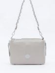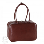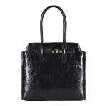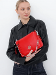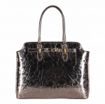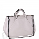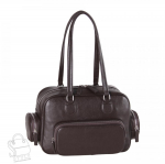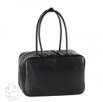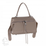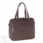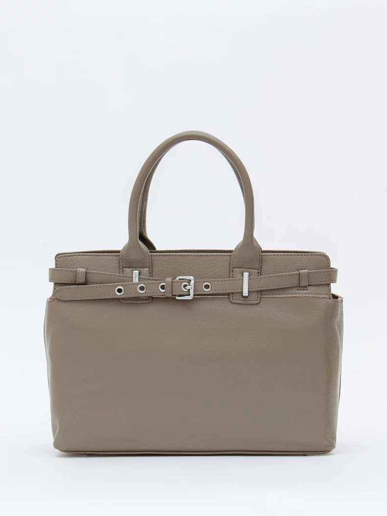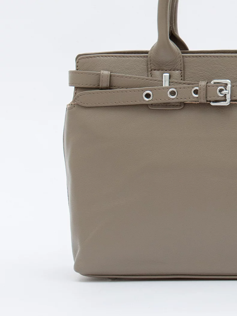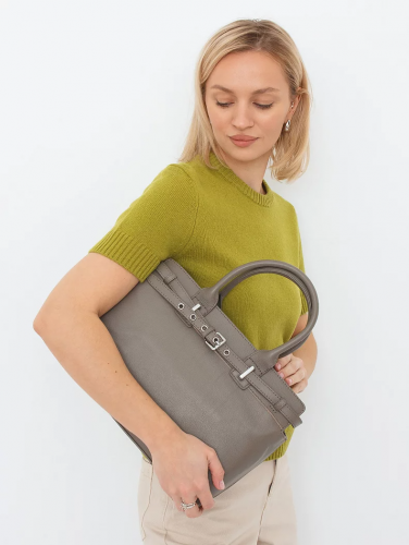 Сумка-портфель, выполнена из кожи. Декорирована ремнем на корпусе. Дополнена серебристой фурнитурой. Данная модель закрывается на молнию. Каркас полужесткий. Носится в руке за встроенные ручки или на плече. В комплекте имеется съемный ремень с регулировкой длины. На дне предусмотрены ножки.