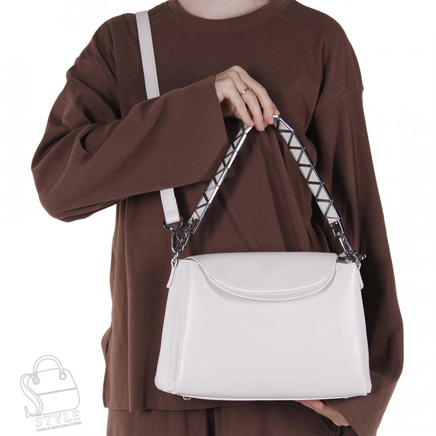 Модель кросс-боди, выполнена из натуральной кожи. Дополнена  серебристой фурнитурой. Данная модель закрывается на клапан. Каркас полужесткий. Носится на плече. В комплекте имеется съемный ремень с регулировкой длины. Или в руке за съемную ручку.