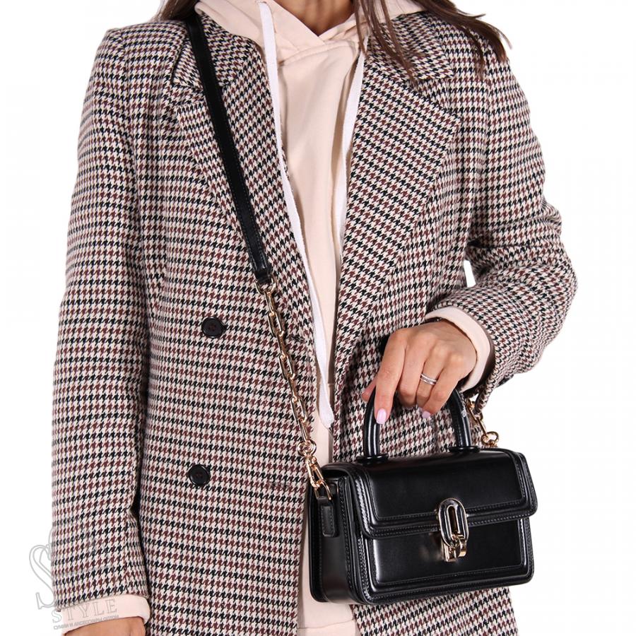 Сумка кросс-боди, выполнена из глянцевой натуральной кожи. Декорирована пряжкой на передней части. Дополнена золотистой фурнитурой. Данная модель закрывается на клапан. Каркас жесткий. В комплекте съемный ремень с цепочками на концах, регулируется по длине, крепится за карабины. Модель так же носится за встроенную ручку.