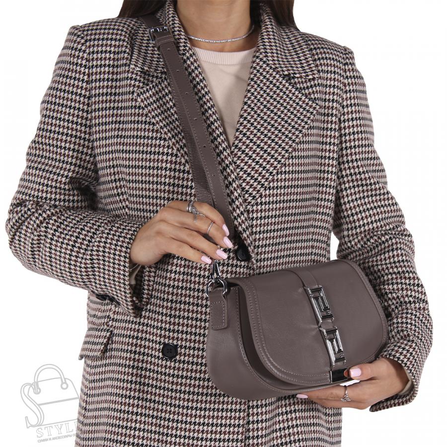 Модель кросс-боди, выполнена из натуральной кожи, декорирована пряжкой. Дополнена серебристой фурнитурой. Данная модель закрывается на клапан, носится на сгибе руки или на плече. В комплекте предусмотрен ремень с регулировкой длины и короткая ручка. Каркас полужесткий.