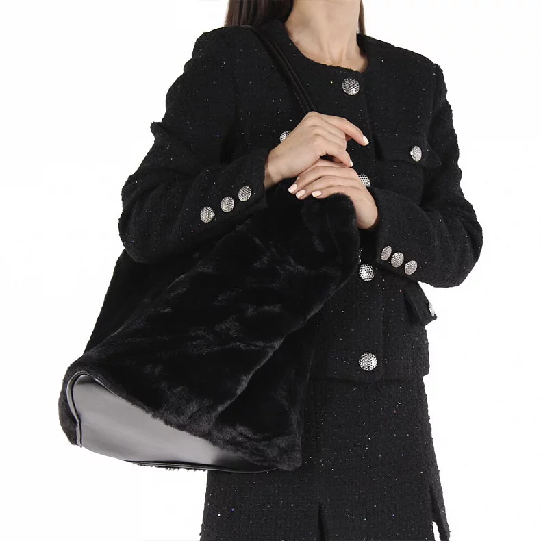 Сумка выполнена из меха.  Данная модель открытая. Каркас мягкий. Носится на плече или в руке. Встроенные удлиненные ручки.