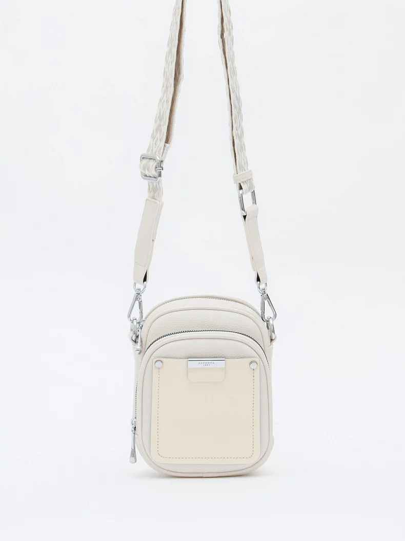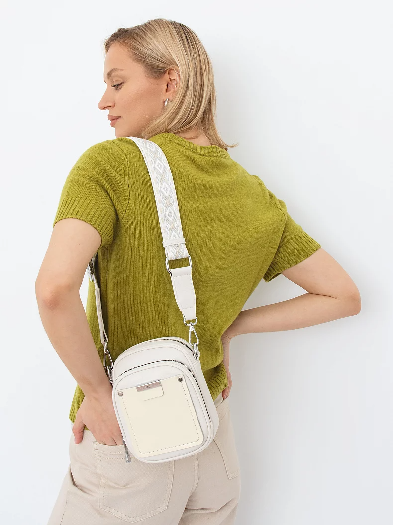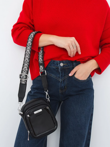 Сумка кросс-боди, выполнена из экокожи. Дополнена серебристой фурнитурой. Данная модель закрывается на молнию. Каркас полужесткой формы. Носится на плече. В комплекте имеется съемный ремень-стропа с регулировкой длины.