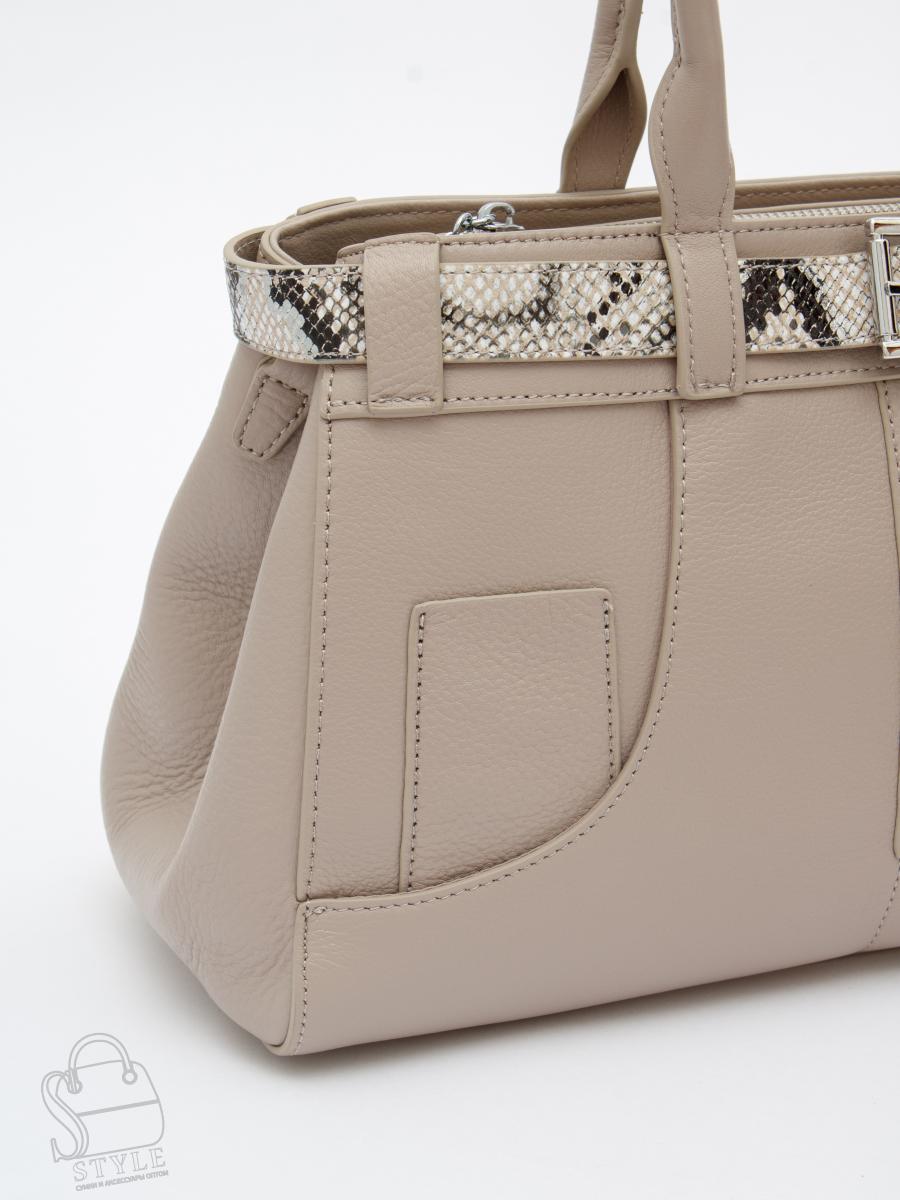 Модель-такса, выполнена из натуральной кожи. Декорирована ремнем с принтом на корпусе. Дополнена серебристой фурнитурой. Данная модель закрывается на молнию. Каркас жесткий. Носится на плече за съемный ремень с регулировкой длины. Или в руке за встроенные ручки. На ручках имеется фиксатор. На дне предусмотрены ножки.