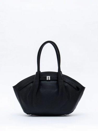 Сумка в форме лодочки, выполнена из натуральной кожи. Декорирована ремнем на корпусе. Дополнена серебристой фурнитурой. Данная модель закрывается на молнию. Каркас полужесткий.  Носится на плече или в руке. В комплекте имеется съемный ремень с регулировкой длины и две встроенные ручки.