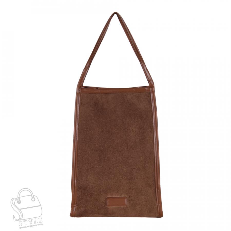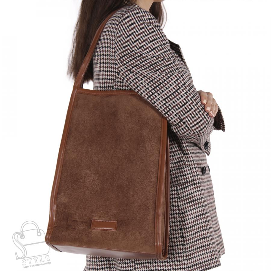 Вместительная модель, выполнена из экозамши. Данная модель открытая. Каркас полужесткий. Носится в руке за длинную ручку.